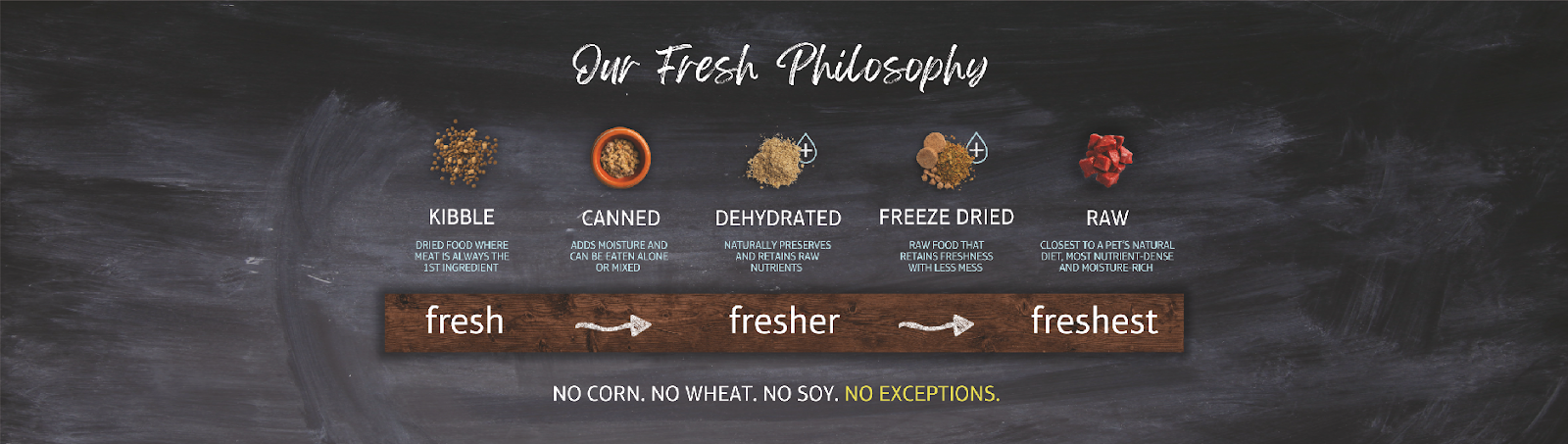 If your pet currently eats only kibble, we recommend a gradual transition to a fresher diet. Start by gradually introducing a little goat's milk or broth to each meal. From there, you can start to mix in a little canned or freeze-dried food to add moisture and a larger variety of proteins. You don’t need to switch entirely to raw or fresh food — adding a bit of fresh food over time can make a positive difference.