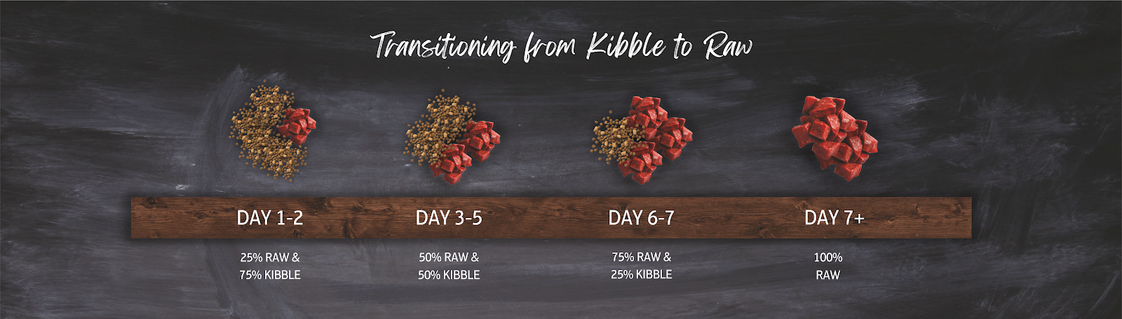 And remember, if you are adding new food sources to kibble, you'll want to adjust the kibble portion so you cat or dog isn't overeating. It's also best to transition to new foods gradually. Normally we recommend completing the transition over a 7-day period slowly changing out the old food type(s) for the new.